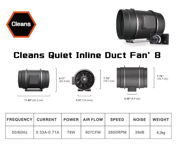 Cleans Quiet Inline Duct Fan 超静音インラインファン