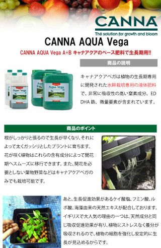 他の画像を見る CANNA AQUA Vega A+B 各1L 生長期用で開花を必要としない葉物野菜などはキャナアクアベガのみでも栽培可能 液体肥料 水耕栽培 CANNA AQUA Vega キャナベガ A+B 各1L Hydroponic Nutrients 当店特別価格 ¥ 4,616 税込 お気に入りに登録する
